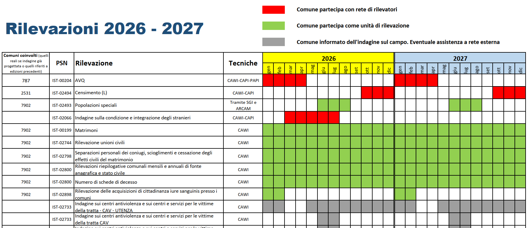 Calendario delle rilevazioni